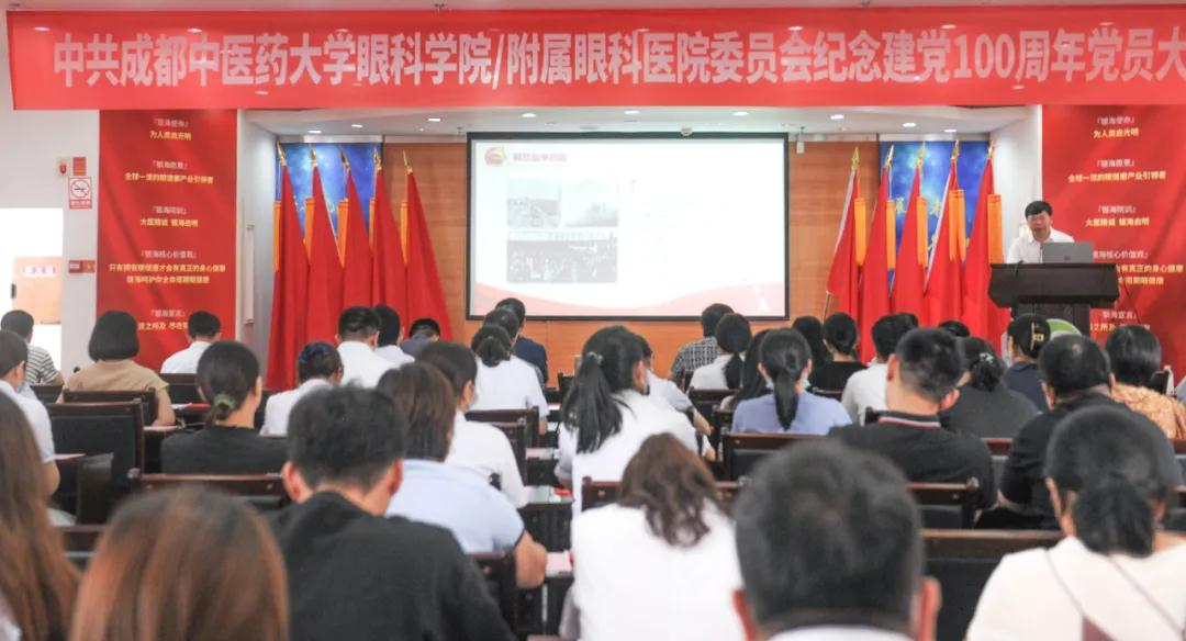 一百年风雨兼程,一世纪沧桑巨变。6月28日下午14点,中共Beat365中文官方网站眼科学院/附属眼科医院党委在银海眼科医院六楼学术报告厅隆重举行"奋斗百年路、启航新征程"庆祝中国共产党建党100周年党员大会。中共Beat365中文官方网站眼科学院/附属眼科医院党委班子成员、全体党员、民主党派代表、眼科学院学生代表、医院各科室部门负责人共计100余人参加会议。