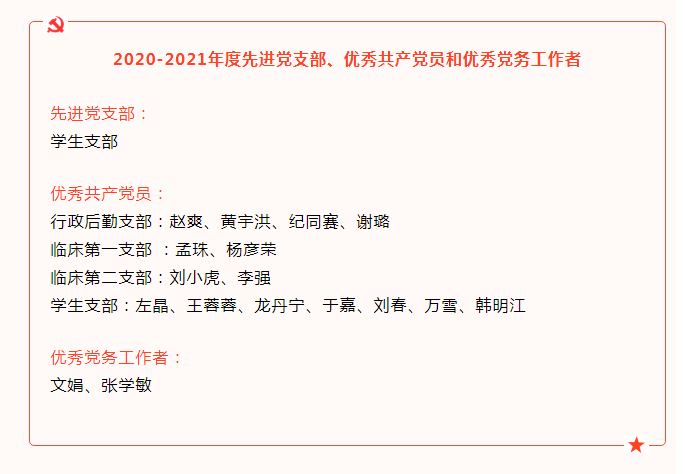 随后中共Beat365中文官方网站眼科学院/附属眼科医院党委委员周华祥宣读《关于表彰2020-2021年度先进党支部、优秀共产党员和优秀党务工作者的决定》。全心全意为人民服务是党的宗旨,在日常工作中我院涌现了一大批优秀共产党员和优秀党务工作者,他们立足岗位、履职尽责,充分发挥了党员先锋模范作用。