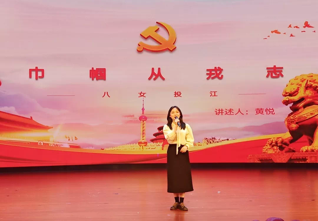 决赛中,黄悦讲述了《巾帼从戎志》的故事。1938年的乌斯浑河畔边,在清冷的黎明里,敌人突然向我军发起了突袭,在紧要的生死关头,八名女战士迅速抄起长短枪,从背后袭击敌人,吸引日军火力,掩护大部队突围。然而,由于事发突然,八名女战士携带的弹药远不足以支撑战斗。在战至弹尽的情况下,面对日伪军逼降,八名女战士誓死不屈,她们投出了最后一颗手榴弹,趁敌人卧倒的机会,毁掉枪支,挽臂涉入了冰冷的乌斯浑河,壮烈殉国!
