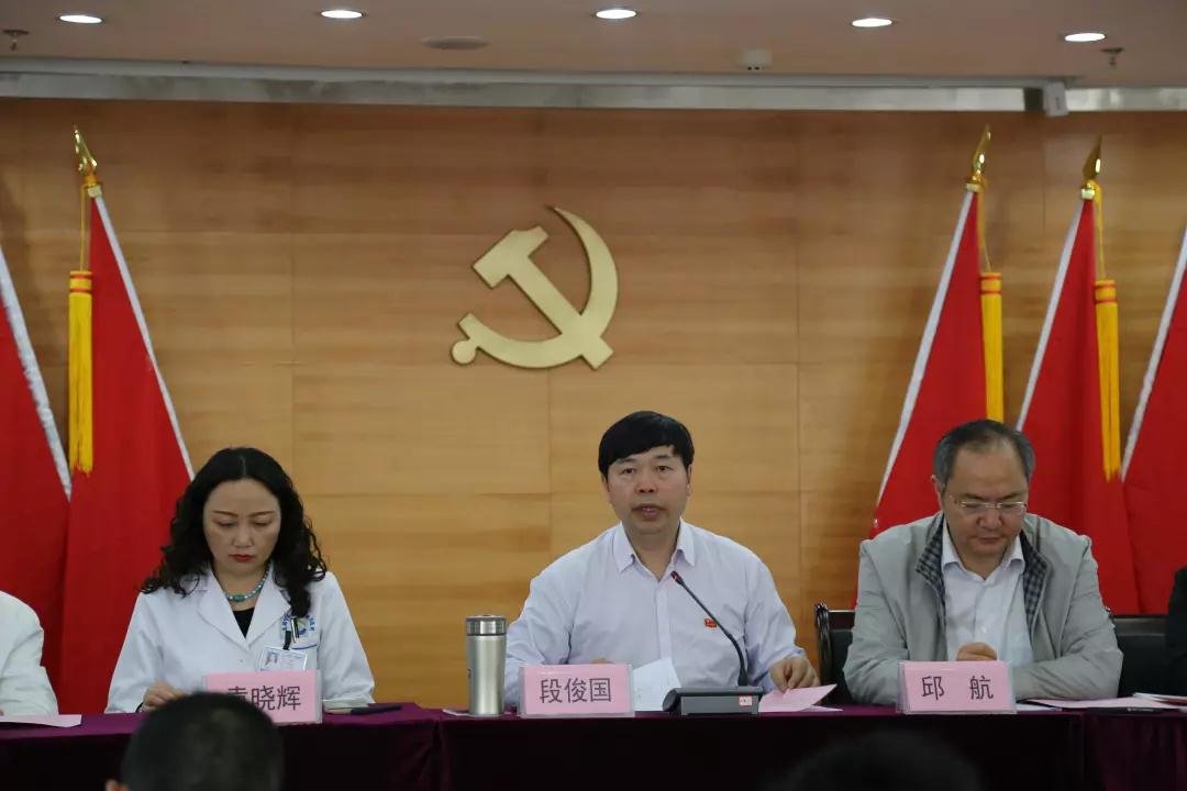 2018年工作4月18日下午,Beat365中文官方网站眼科学院/附属银海眼科医院召开2018全面从严治党大会。院党委书记/院长段俊国、副院长邱航、院长助理袁晓辉、医疗质量总监刘文、院党委委员、各科室、部门负责人、党员职工和学生党员共计60余人参加会议。院党政办主任陶铮主持会议。