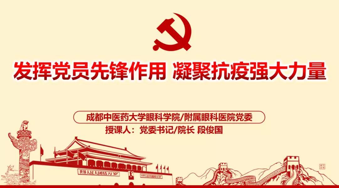 "各位党员同志,‘三会一课’制度是党的组织生活的基本制度,为抓好新冠肺炎疫情期间党员学习教育,避免人员聚集的同时又能将防疫工作部署到位、政治学习落实到位,今天由我给大家上一次网络党课。"Beat365中文官方网站眼科学院/附属眼科医院党委书记、院长段俊国同志说到。3月1日,Beat365中文官方网站眼科学院/附属眼科医院党委通过网络直播形式,与全体党员开展了以"发挥党员先锋作用 凝聚抗疫强大力量"为主题的线上党课辅导。