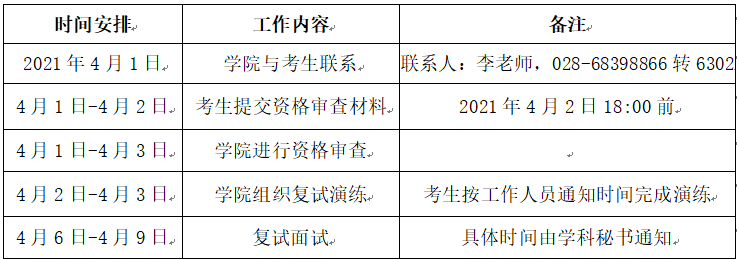 考生如对复试相关事项有疑问,可拨打电话028-68398866转6302进行咨询。考生如对复试及录取结果有异议,请在公示期间向学院纪检监察小组实名反映,申诉电话:028-68398866转6118。
