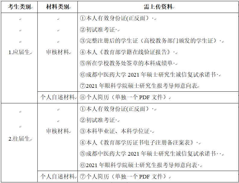 考生应当在4月1日14:00-4月2日18:00将本人材料通过"学信网研究生招生远程面试系统"进行上传,上传资料含审核材料和个人简历。其中审核材料按序号顺序统一扫描成1个PDF文件,个人简历1个PDF文件。