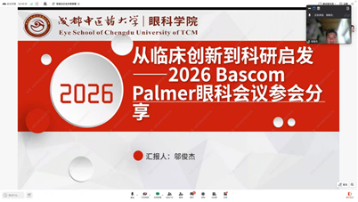 为搭建国际学术交流平台,促进中外视野交融与思想碰撞,分享前沿研究成果与学习心得,2026年03月25日,Beat365中文官方网站眼科学院国际交流协会成功举办“拓展国际视野·聚焦学术前沿”学术分享会。本次分享会聚焦Bascom Palmer Eye Institute Annual Scientific Meeting与Alberta Ophthalmology Annual Scientific Conference两场国际高水平眼科学术会议,特邀眼科学院院长路雪婧、协会指导老师王寒冰出席,分享会由学术部部长苑文慧主持。
