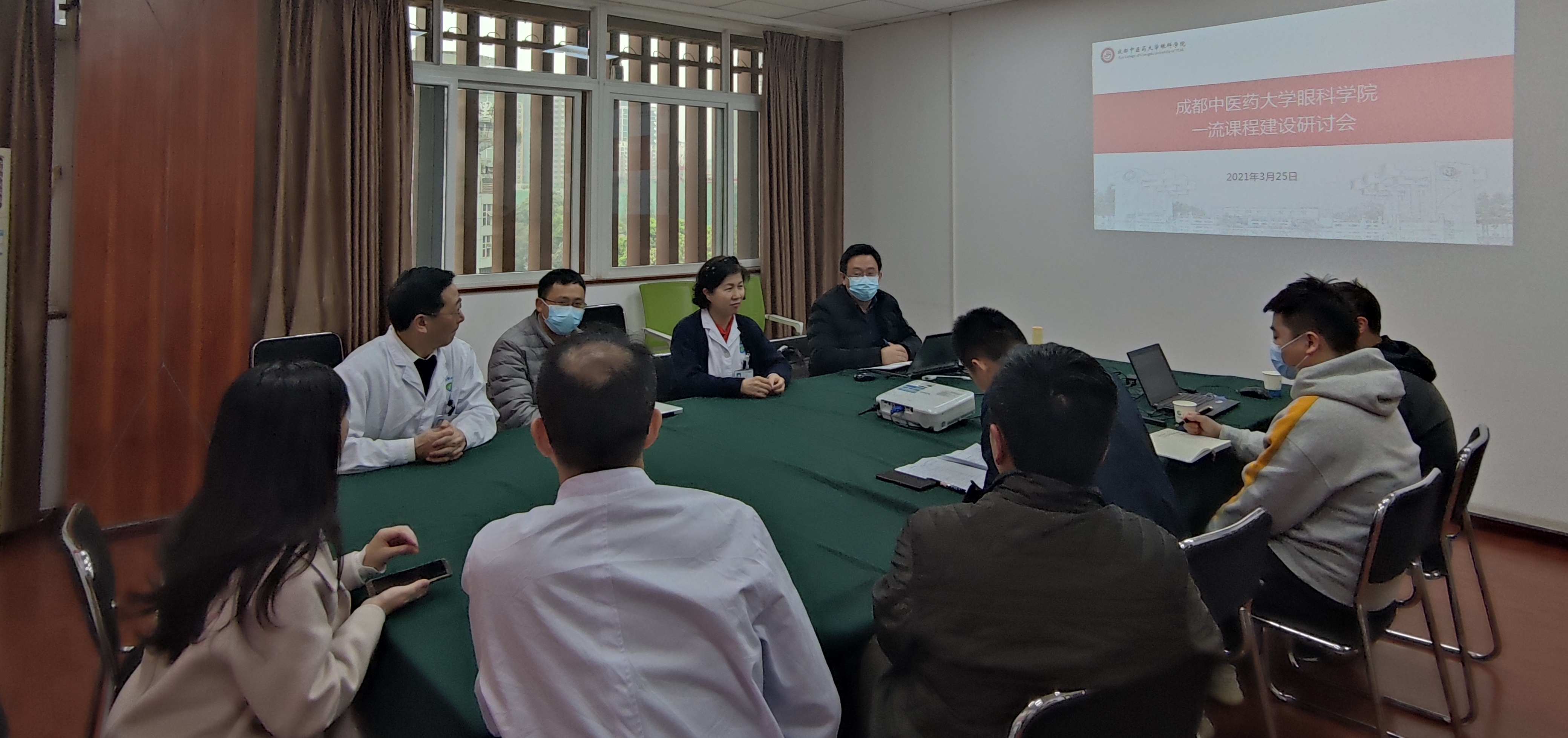 3月25日晚,眼科学院在成都中医大银海眼科医院6楼会议室开战了一流本科课程建设研讨会。学院副院长路雪婧,学院本科教学督导组组长/科教学工部部长张富文、中医眼科教研室主任周华祥、眼科教研室副主任王博、眼视光教研室主任周春阳、本科教学督导专家孔玮、李强等人参加研讨会,会议由科教学工部副部长高山主持。