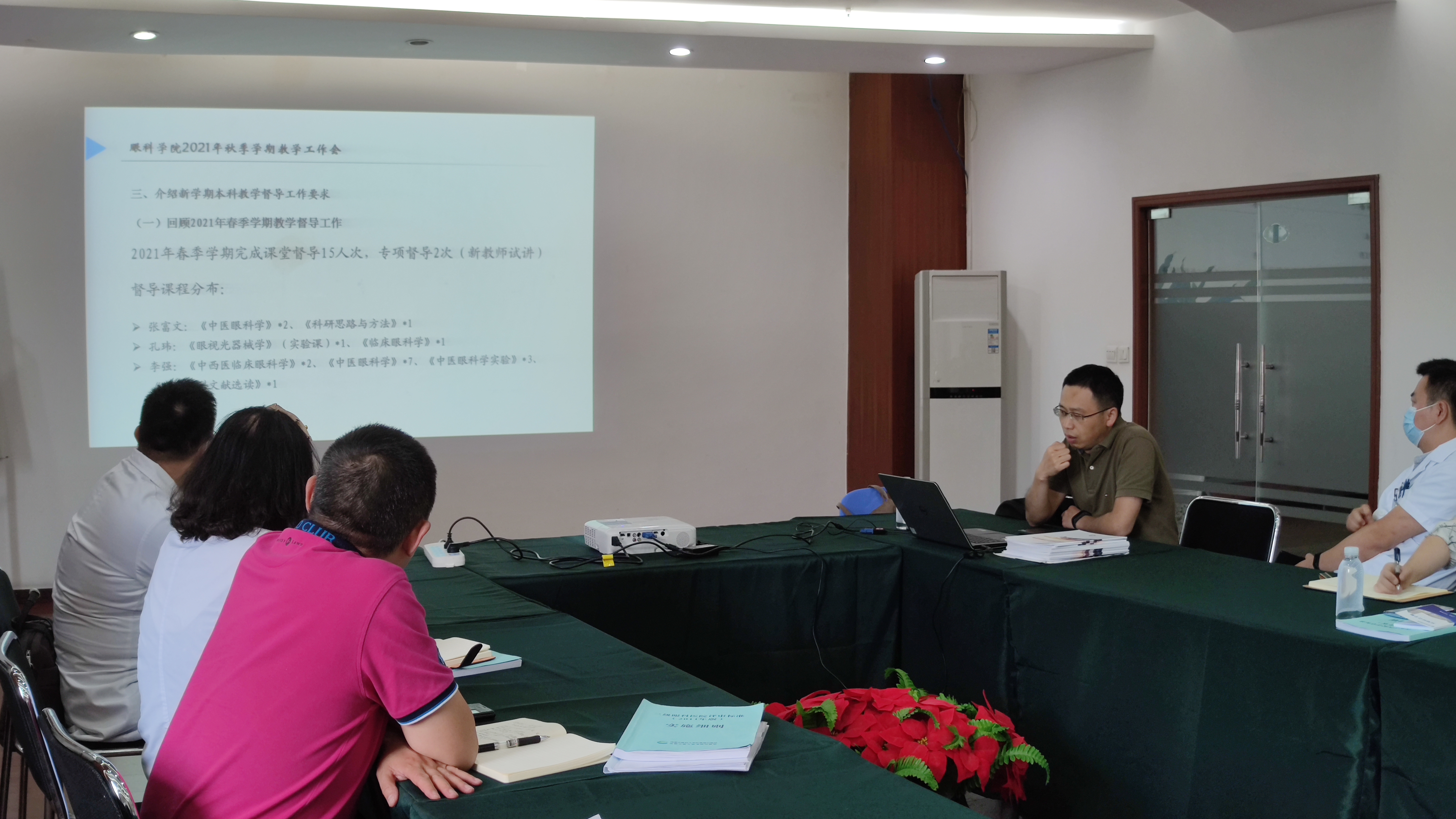 9月1日17:00,Beat365中文官方网站眼科学院/附属眼科医院召开2021年秋季学期教学工作会。副院长路雪婧、学院本科教学督导专家、各教研室主任、教研室秘书共计14人参加了会议。会议由教学科主任高山主持。