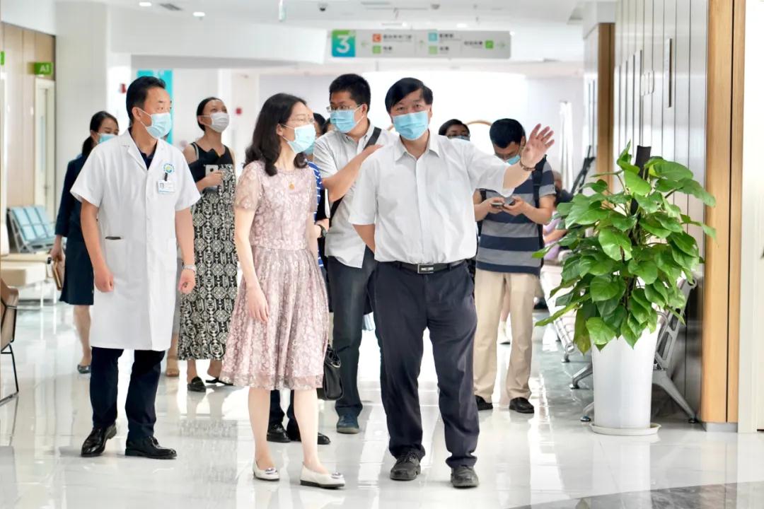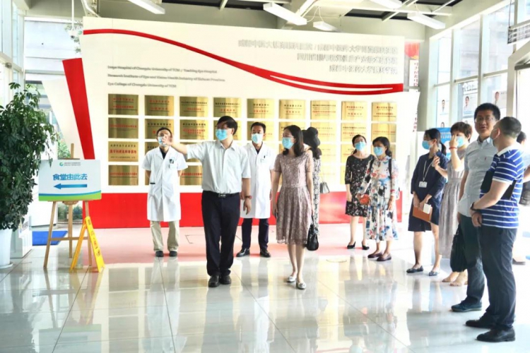 成都中医大银海眼科医院党委书记/院长段俊国、副院长谢静、副院长路雪婧、党委副书记陶铮、眼健康管理中心主任张富文、运营部总监文燕明等陪同参观并参加座谈会议。